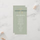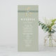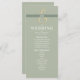 Simple, contemporary, minimal sage green wedding program with modern calligraphy and elegant gold ampersand.