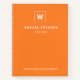 Monogram School Subject Student Orange Custom Name Notebook in Bright Orange and white bold text for high school or college students.