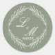 Monogram Script Branch Sage Green Wedding Classic Round Sticker