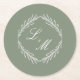 Monogram Script Branch Sage Green Wedding Round Paper Coaster