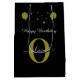 Monogram Script Happy Birthday Black White Gold Medium Gift Bag