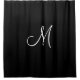 Monogram Script Initial Black White Minimal Simple Shower Curtain