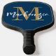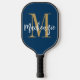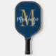 Modern personalised custom colour pickleball paddle featuring a monogram and name shown in an editable hand-lettered script name in changeable blue and white colours for the pickler or pickleball enthusiast. COLOR CHANGES: Change the text or background colours or add a styled graphics background by clicking on the EDIT tab in the PERSONALIZE section to create your own custom design. PADDLE OPTIONS: Choose from Black, Tan or White edging and grip colours on the ordering page. ASSISTANCE: For help with design modification or personalisation, colour change, transferring the design to another product or if you would like coordinating items, contact the designer BEFORE ORDERING via the Zazzle Chat MESSAGE tab below or email makeitaboutyoustore@gmail.com.