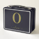 Monogram Script Name Personalised Black And Gold Metal Lunch Box