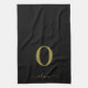 Monogram Script Name Personalised Black And Gold Tea Towel