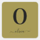 Monogram Script Name Personalised Gold And Black Square Sticker