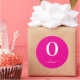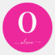 Monogram Script Name Personalised Hot Pink White Classic Round Sticker