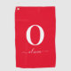 Monogram Script Name Personalised Red And White Golf Towel