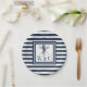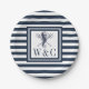 Monogram Seahorse Nautical Navy Blue Stripe Paper Plate