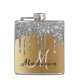 Monogram Silver Glitter Drips Girly Sparkle Flask