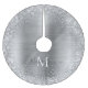 This gorgeous Christmas tree skirt features silver grey brushed metal background with sparkling silver glitter borders. Add your family name and initial for a personal touch.