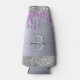 A cooler for a girly and glamourous party with the girls. A faux silver metallic looking background with elegant purple and faux silver glitter drips, paint dripping look. Personalise and add your name and monogram letter. The name is written in black with a modern hand lettered style script with swashes. Black and grey letters.
