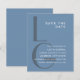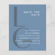 Grey and white monogram. Elegant simple typography minimalist dusty blue wedding Save the Date.