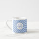 Personalised baby boy monogram small mug. Perfect baby shower or the first boy's birthday gift idea. Traditional pastel baby blue and white colour combo. Custom initial and name surrounded by the stars and stripes. Add the name and initial with easy to use Zazzle editing tool! Visit the shop to see all the collection. There are stickers, blankets, pillows, baby bibs and so much more available.