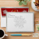 This holiday envelope features a snowflake with silver ribbon trim on a red background. The back flap has a placeholder for the last name initial bordered by leaf monogram frame in silver. This envelope is designed to coordinate with the "Silver Framed Photo & Crystal Snowflake Holiday Card" To change details, click «Personalise». To move the text or change the text size, font, or colour click «Click to customise further».