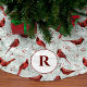 Monogram Snowy Pine Branches Cardinal Christmas Brushed Polyester Tree Skirt