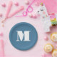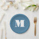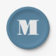 Monogram Solid Blue Pastel Minimalist Professional Paper Plate