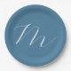 Monogram Solid Blue Pastel Minimalist Professional Paper Plate