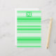 Monogram spring green stripes stationery