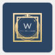 Monogram Square Golden Frame Minimal Blue Square Sticker