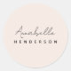 A simple, stylish custom monogram round sticker and envelope gift seal featuring modern minimalist typography with an elegant handwritten script paired with clean block lettering in black on a soft pastel blush pink background. The monogram name can be easily personalized to create a one-of-a-kind design that reflects your personality or brand. Perfect for weddings, bridesmaid or bridal gifts, feminine businesses, or everyday mail, this pretty and versatile sticker adds a touch of charm and sophistication to any package or envelope. A beautifully balanced design that’s timeless, girly, and effortlessly elegant - ideal for both personal and professional use.