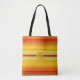 A modern designer bag featuring a colourful striped pattern in warm orange reds and ochre yellow. You can customise or delete the monogram text as well as scale or rotate the pattern if you like.