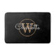 Monogram Stylish Feminine Script Black Gold Bath Mat
