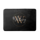 Elegant stylish black and gold script name monogram bath mat. You can personalise the name, monogram and customise the font and colours to create your own unique design. Designed by Thisisnotme©