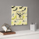 A monogrammed design, this clock features a chic yellow background, with high heel shoes decorated in black, polka dot, yellow, etc. This clock will look great anywhere in your home, order yours today!