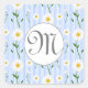 Monogram Summer Daisy floral Pattern Blue Stripe Square Sticker