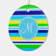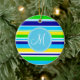 Monogram Summer Striped Teal Green Yellow Blue Ceramic Tree Decoration