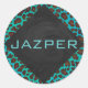 Monogram Teal and Brown Leopard Classic Round Sticker