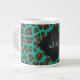 Monogram Teal and Brown Leopard Large Coffee Mug