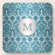 This elegant and stylish monogrammed teal blue and silver floral damask coaster set would make an elegant house-warming gift or host or hostess gift. Customise it however you want!