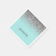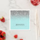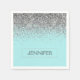 Silver and Aqua Teal Blue Faux Glitter Sparkle Elegant and Modern Chic Trendy Luxury Monogrammed Paper Party Napkins. These monogram - add your own name customised napkins can be updated with your name and used for a Birthday Party, Wedding, Corporate Activity, Bachelorette, Bridal Shower or Baby Shower Party.