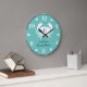 Monogram Teal Blue White Navy Blue Crab Nautical Large Clock