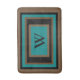 Monogram initial in centre in black typography.  Geometric block pattern.  Teal green with brown and black rectangles.  Original Design by TamiraZDesigns.