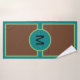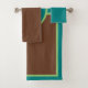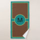 Monogrammed teal green, chocolate solid colour background shapes print. Personalise with your monogrammed initial inside teal circle on bath towel. Bring some cool colours into your bathroom decor with unique bath towel sets. Original Design © TamiraZDesigns.