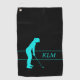 Monogram Teal on Black Woman Silhouette Golfer Golf Towel