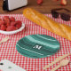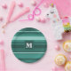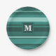 Monogram teal stripes paper plate