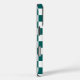 Cool iPhone case features a bold teal and white chequered pattern with a customisable monogram. Add (or delete) 3 initials or numbers in the sidebar to personalise it. The geometric chequerboard pattern is made of rows of alternating white and teal squares. Other case styles and models also available in the sidebar.