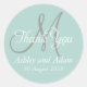 Monogram Stickers for Weddings. This elegant, simple design is perfect for wedding favours and thank you cards. Elke Clarke ©2011. The words "thank you" in a white script font, bride and groom names and wedding date in white text, grey monogram or initial design on a mint green background. For other colours contact luxuryweddinginvitations@gmail.com