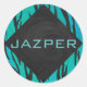 Monogram Tiger Black and Teal Print Pattern Classic Round Sticker