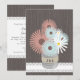 A wedding invitation featuring an illustration of a tin can filled with white, peach, and blue daisies with a background of barnwood. Personalise with your initials on can. Look for matching items at Jill's Paperie.