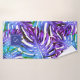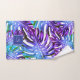 Monogram Tropical Leaf Pattern Purple Blue Modern Bath Towel Set