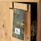 Black tropical jungle cat print kitchen towel monogrammed with initial.