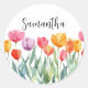 Monogram Tulips Spring Flowers Colourful & Cheerfu Classic Round Sticker