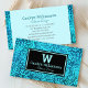 A turquoise and blue ombre leaf foliage damask pattern on a rich, deep turquoise textured background adorns this stunning, modern, trendy custom business card. Personalise with your initial, full name, and business on the front. Fill in the back side with your phone numbers, address, email, website, and social media accounts. Makes a chic, smart, and stylish statement wherever you go.