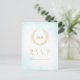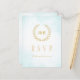 This elegant timeless classic wedding design combines classic laurel wreath enclosing Bride’s and Groom’s monograms and a light turquoise watercolor ombre. Gold lettering (gold is not real gold but colour). Elegant font combo.
