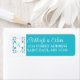 These monogrammed white and turquoise or teal blue floral wedding return address labels match the Turquoise and White Love Hearts Wedding Invitation set. Your name(s) and return address are in white on a turquoise background with your monogram in turquoise blue on the left side of the labels between two blue floral patterns.